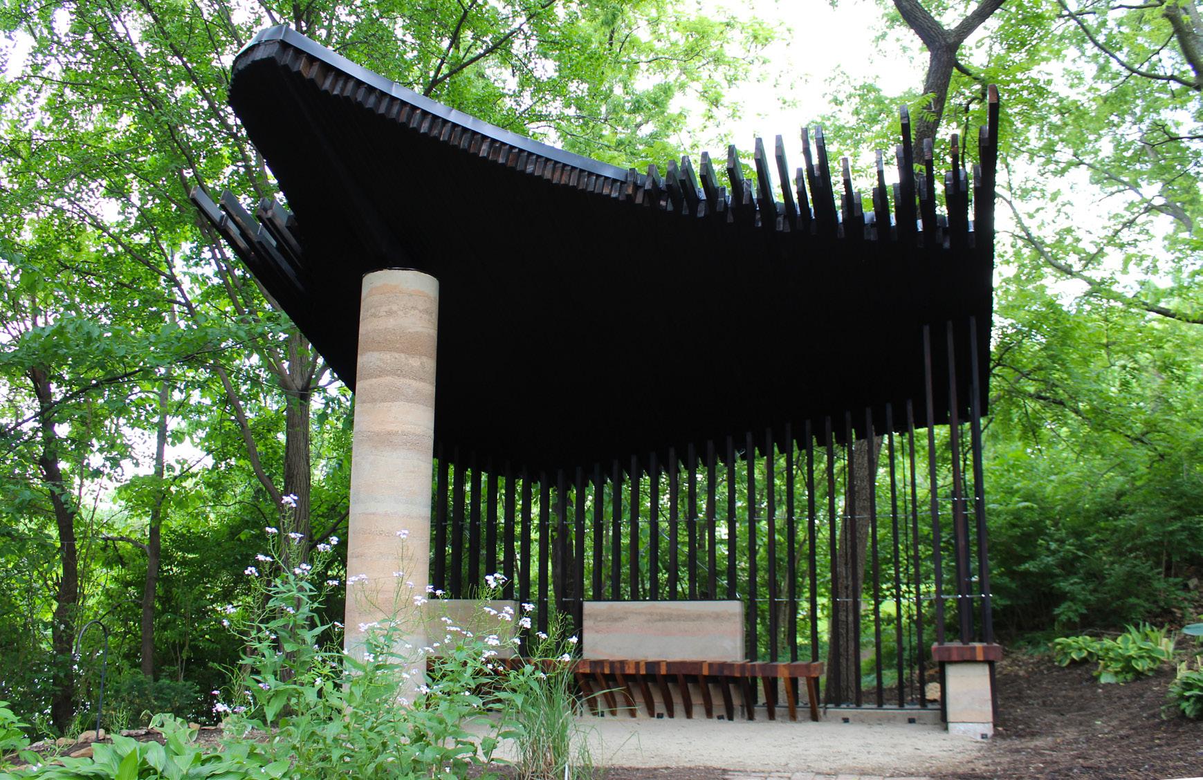 The Sensory Pavilion was a student led design-build project run by the Dirt Works Studio program at the University of Kansas. A team of 20 students split responsibilities, planned and designed a pavilion that would serve the needs of the community in the same way that the Audio Reader Network served them.