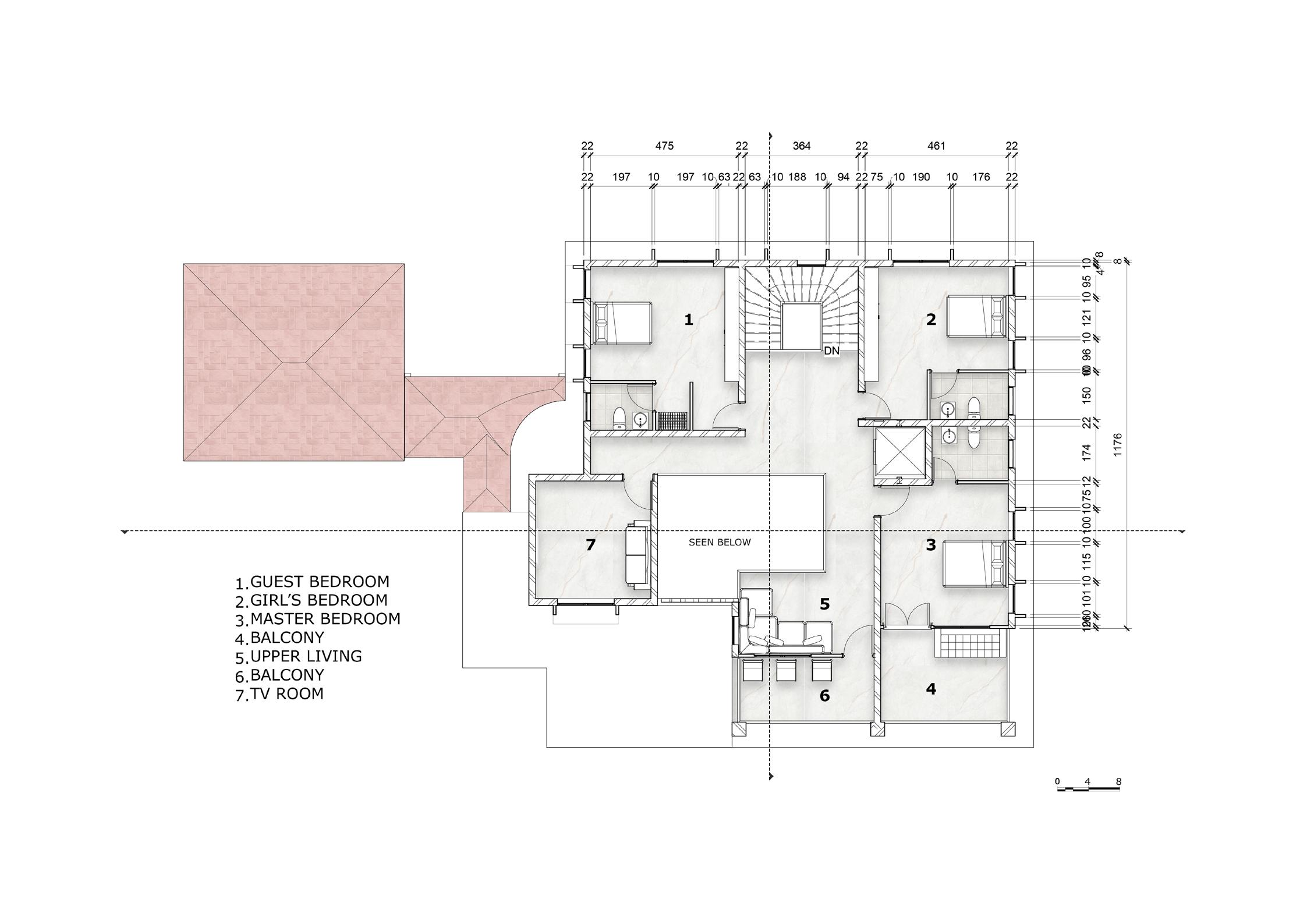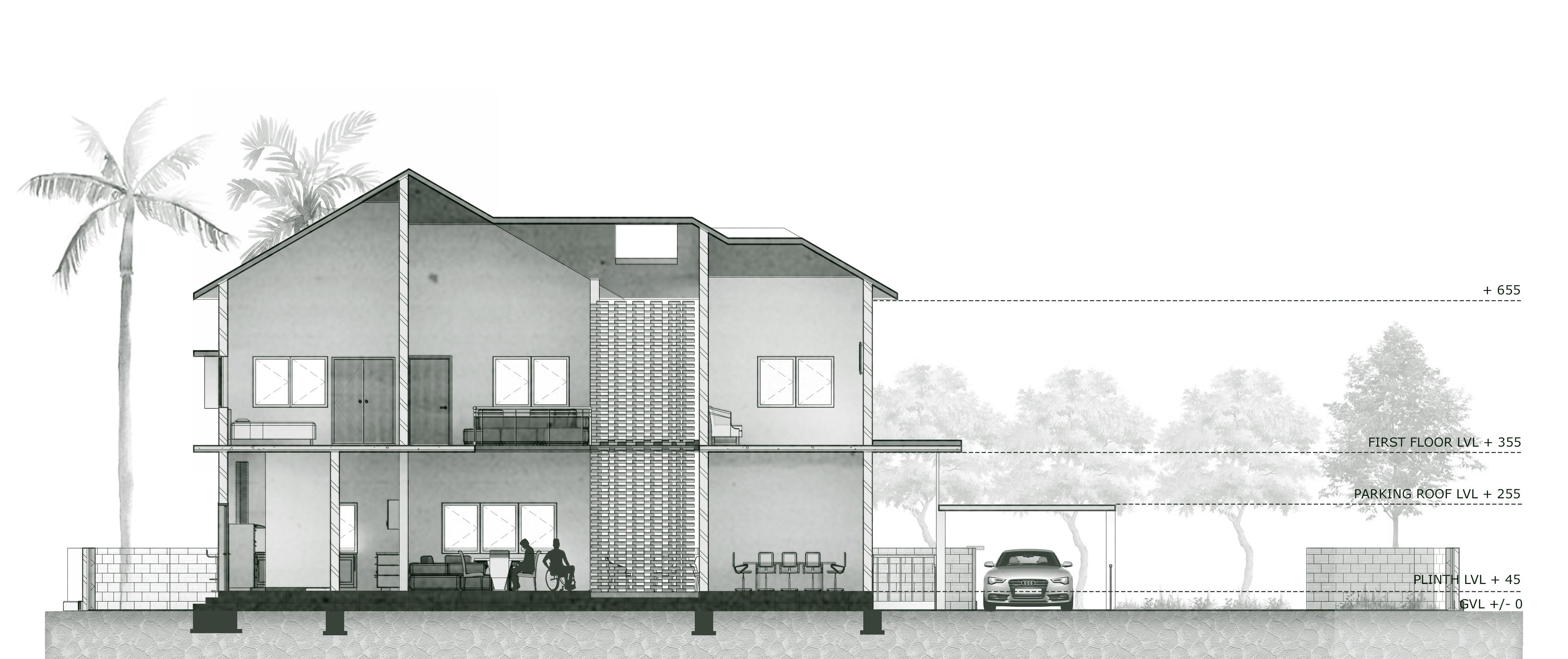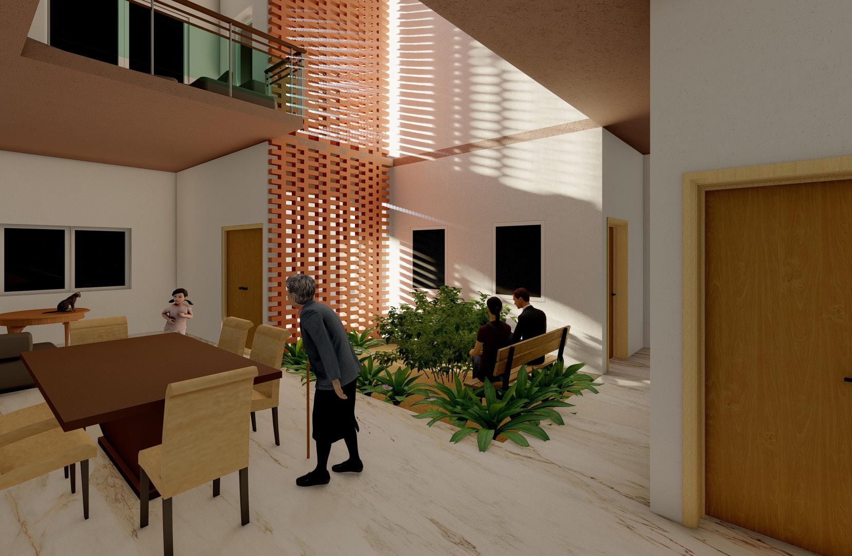 PURAKA Residence, a semester 4 design project, caters to the unique needs of a 6-member family in Trivandrum. Named the “Breathing House,” it embodies a living, energetic space. Designed to accommodate a wheelchair-bound 19-year-old and nurture the musical passion of a 9-year-old girl, it harmoniously embraces the grandparents, gynecologic mother, and businessman father. The house breathes through its innovative ventilation system, promoting a healthy and refreshing environment. With thoughtful spatial planning and inclusive design, PURAKA Residence fosters a vibrant and inclusive family lifestyle.