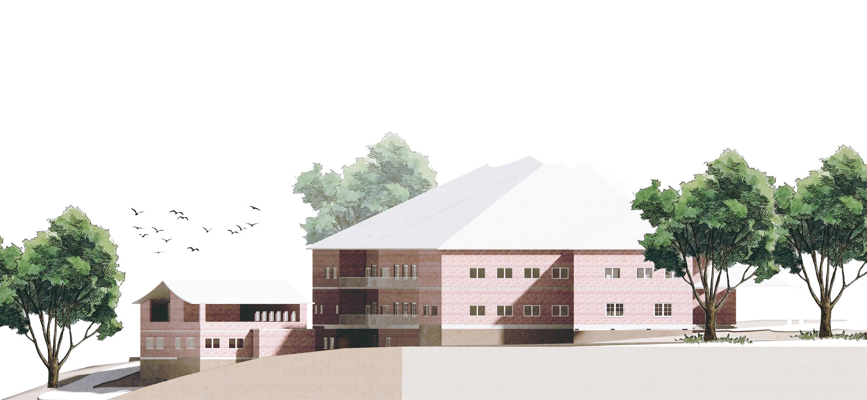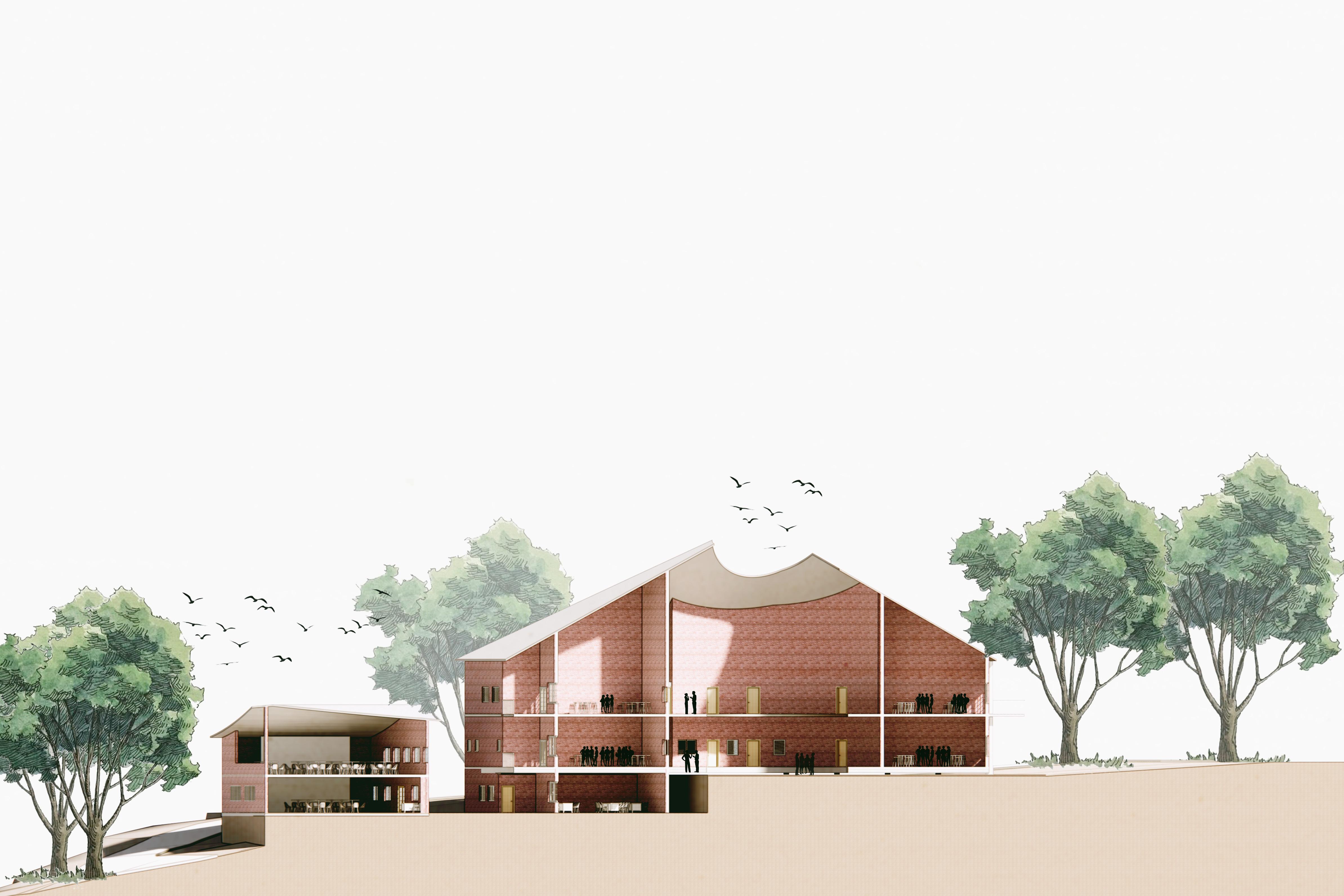 The “Friend Campus” concept aims to create a harmonious relationship between nature, students, and staff. The design includes two soul spaces: an exhibition area to showcase student talents and attract parents, and an internal courtyard as a niche and gathering space. Zoning the campus maximizes vertical interactions among students, fostering a vibrant and engaging learning environment.