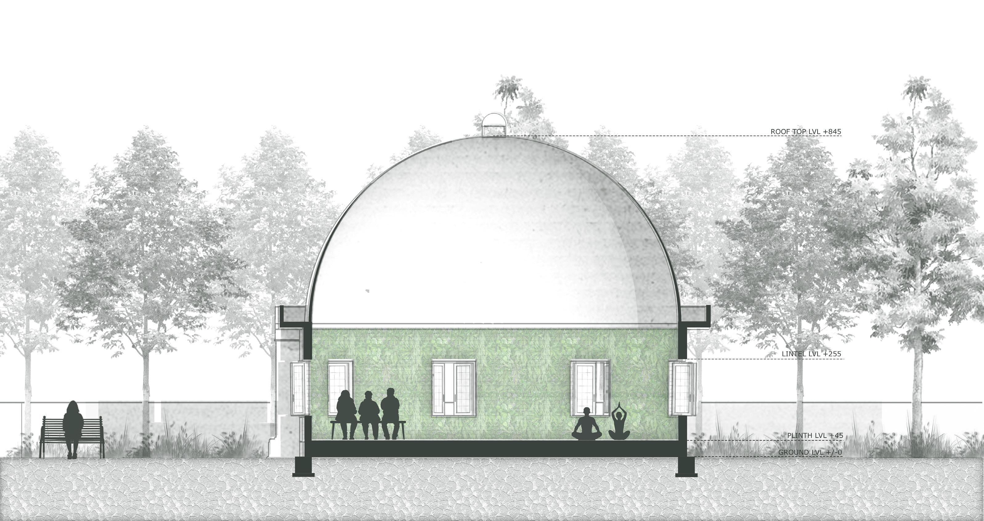 The proposed multifaith center design project at CET campus in Kerala aims to create an inclusive space where individuals can freely practice their beliefs without feeling alienated. Inspired by religious architectural elements, the design incorporates a bio wall within the meditation hall, enhancing the ambiance with its air purifying properties. The concept envisions a cooler and fresher atmosphere, fostering a harmonious environment for spiritual reflection and interfaith dialogue.