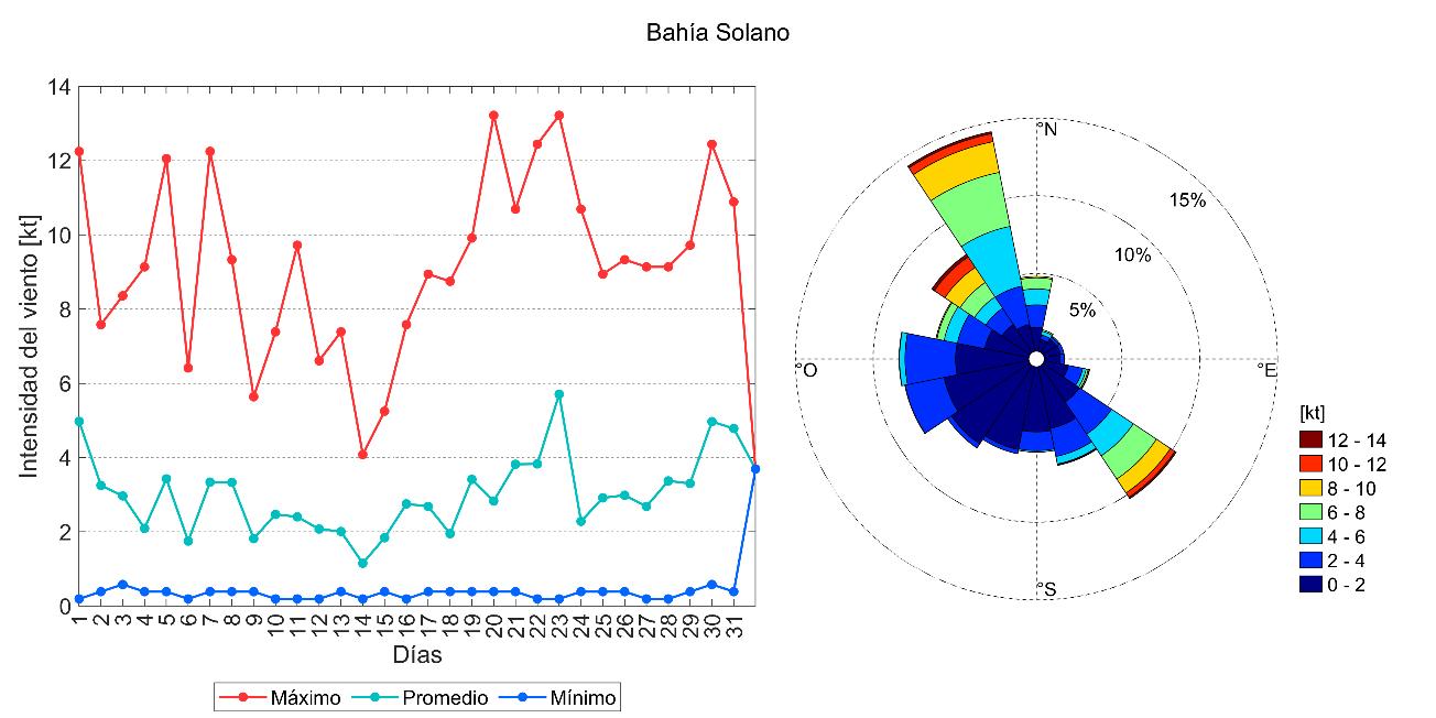 Parámetro Bahía Solano Velocidad promedio 3.05 Dirección predominante Nor-Noroeste Total de datos 8.214
