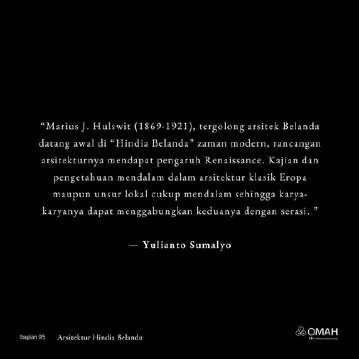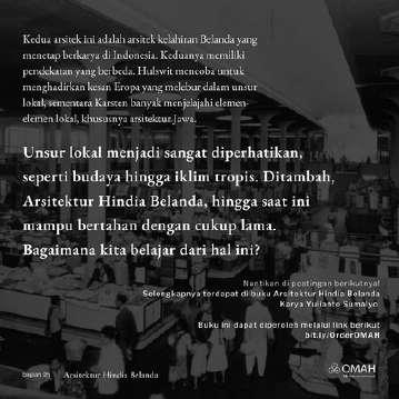 Sarjana di Universitas Mercu Buana Jakarta Djaan sekaigus bekerja sebagai desainer interior di Archpeago In erior and Construction, yang kemudian berlanjut menadi periset dan penulis arsitektur d Omah Lbrary Waktu banyak dihabiskan dengan berdiskusi bersama dosen pengampu Saah satunya dengan pak Yulianto Sumalyo, tentang menyikapi kekayaan budaya, material, dan ketrampilan ketukangan loka di Nusantara, dari arsitek - arsitek Hindia Belanda