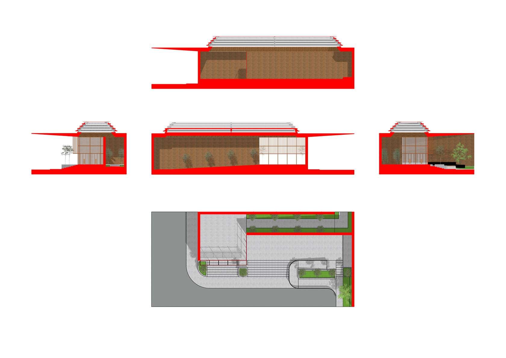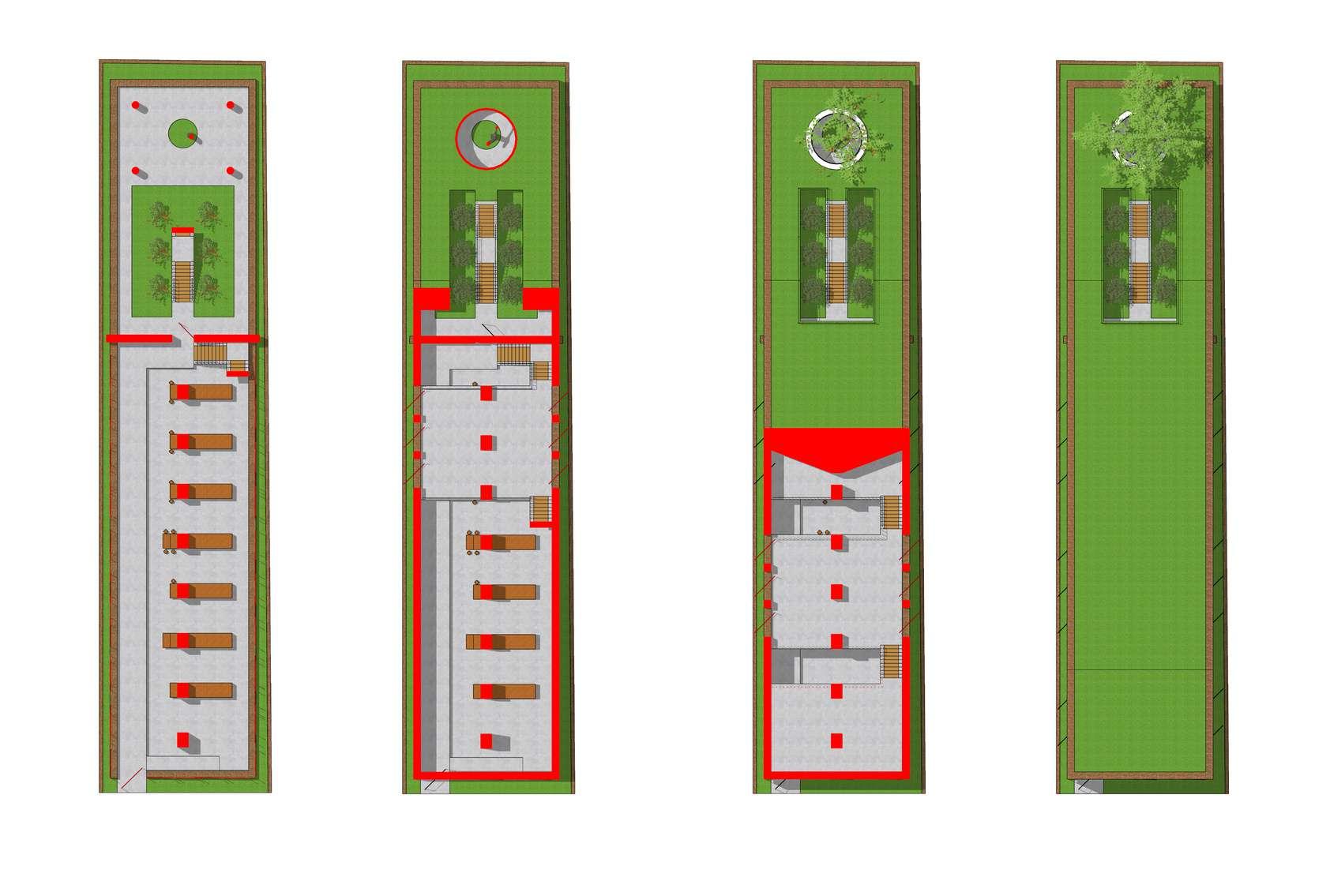 Skenario sirkulasi kendaraan bermesin diletakkan di bagian terluar persil sehingga tidak akan mengganggu aktivitas pengunjung Sedangkan pola tata ruang dirancang dengan alur sirkulasi linier (sekuensial), selaras dengan bentuk persil yang memanjang.