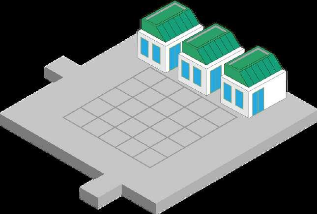 Jalur pejalan kaki didesain untuk tidak bersinggungan dengan jalur kendaraan bermesin, dengan mempertimbangkan bahwa tiap blok bangunan mudah dijangkau terkait pengelolaan dan perawatan Sedangkan dinding compound didesain untuk mereduksi teriknya sinar matahari sekaligus beban angin terhadap blok bengunan.