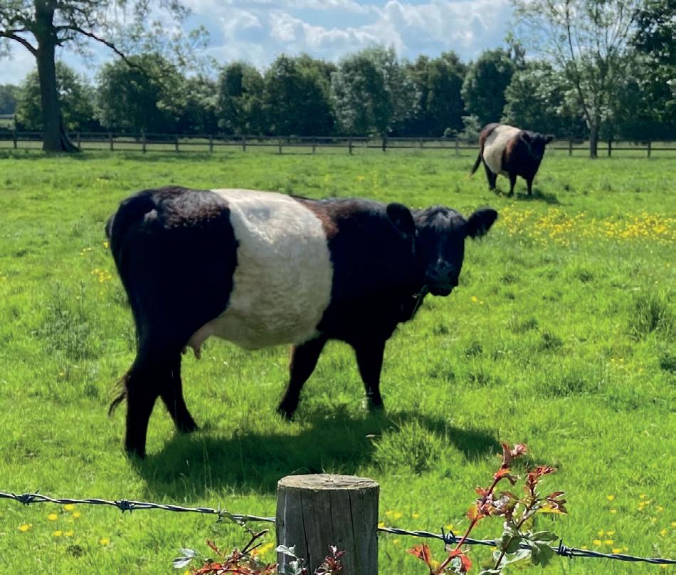 meadows were glowing, and there was hardly anyone to be seen. It was like stepping back in time to a country idyll, with a warm breeze soughing in the oak leaves, a horse and rider appearing around a bend, and Belted Galloways grazing with their calves in the sunshine. It was a truly pastoral scene.