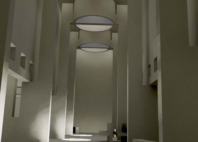 This project was completed following a class trip in the second year to Stockholm, Sweden. The brief of this project was to propose a design for a spiritual space and a communal space. The main aspects of this project is on the spiritual space within the church and the dual usage of the building. The spiritual space is isolated from the building allowing manipulation of light that creates a unique atmosphere within the church. The building contains a central courtyard that separates the usage of the building.