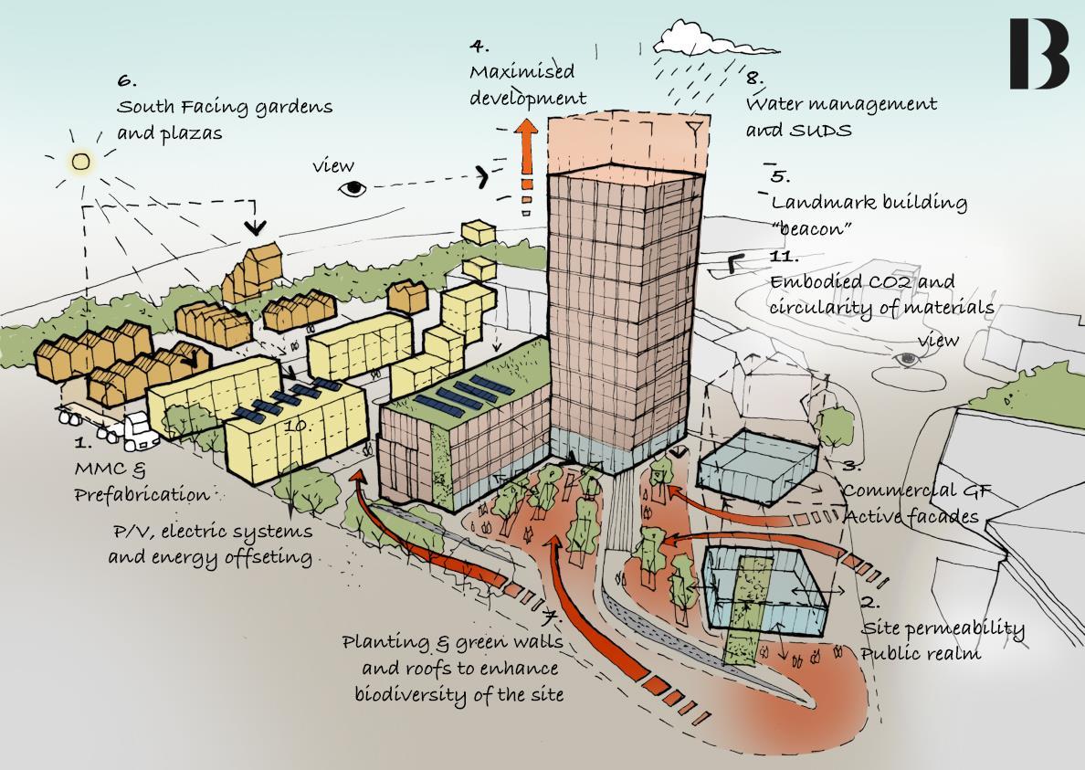 Mixed use, commercial and residential development to create a new neighbourhood in a brownfield site in the centre of Maidstone An active mix of public spaces with a variety of residential typologies to support a variety of occupants and create a vibrant community of residents and and visitors Our team and I worked closely with the local council putting principles of placemaking and civic space in the heart of the development while maximising the commercial potential of the site to attract investment interest in the area
