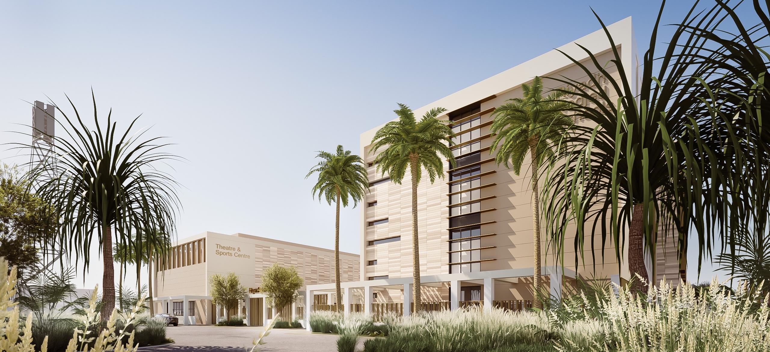 This is a flagship scheme, a 4500 pupil school on a prominent site near the Riyadh city centre. The client brief required street presence and a sense of arrival as well as efficient site layout and links between the buildings Our proposal delivered a masterplan where the separate boys’ and girls' sections are arranged on either side of a central admin and shared facilities block linked with shading canopies that mark the entrances, tightly organised to minimise distances and create protected circulation zones.
