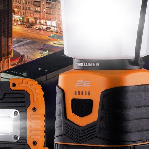 Ліхтарі-світильники У разі недоступності електропостачання та за потреби широкого й розсіяного променю світла стануть у пригоді кемпінгові ліхтарі 2Е� Згодяться під час освітлення чималих площ на будівництві, присадибній ділянці, гаражі чи технічному приміщенні, підвалі або у квартирі� Кемпінгові ліхтарі забезпечують м’яке кругове освітлення та здебільшого тривалу роботу за допомогою одного комплекту елементів живлення� Певні моделі мають розширений функціонал – кілька режимів освітлення� 14