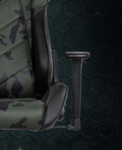The gaming chair is made of Khaki eco-leather upholstery, which creates a special war-impression and sets you up for victory. The design is complemented by a leather cushion of the same style.
