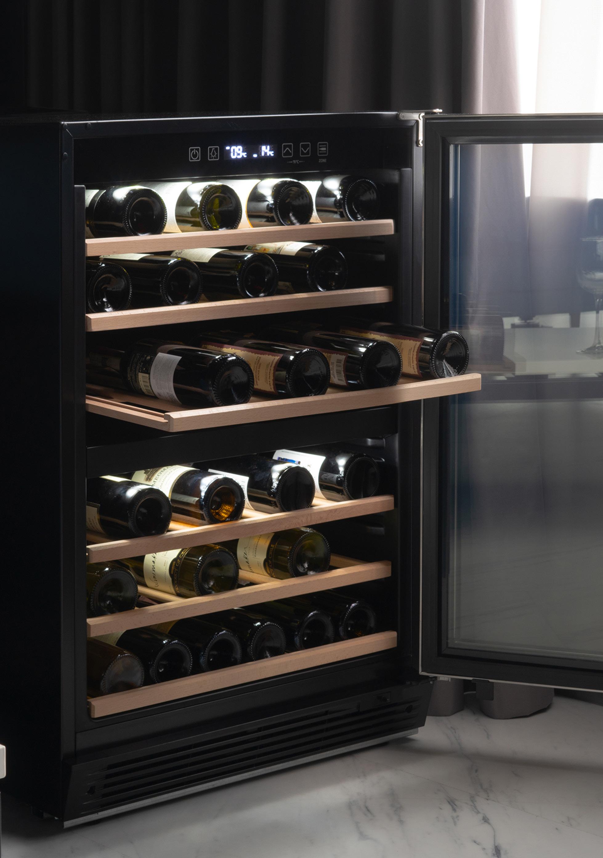 61 Product code WCF-M24 WCF-M34 Type Freestanding Freestanding Cooling system Static Static Number of bottles, pcs 24 34 Number of shelves, pcs 4 6 Total capacity, L 66 93 Energy class A A Cooling temperature, °С 5 to 18 5 to 18 Climate class -Control type Electronic, touch Electronic, touch Features LED backlight; glass door with UV filter; warning system for long door opening and temperature deviation LED backlight; glass door with UV filter; warning system for long door opening and temperature deviation Climate class N ST Dimensions (w × h × d), cm 48 × 44 × 64,2 48 × 44 × 64,2 Weight, kg 24,5 28