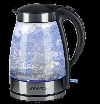 Робота скляних чайників ARDESTO супроводжується LED-підсвічуванням синього кольору, яке вимикається після підігріву води.