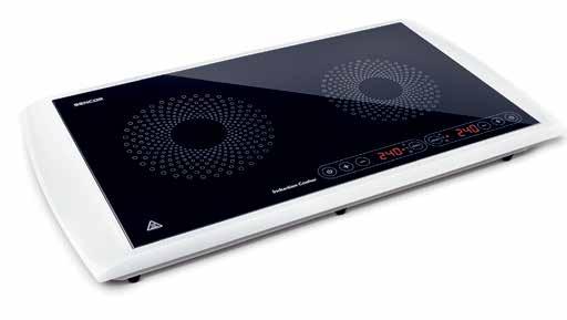 z Підходить для посуду діаметром 12–19 см z Автоматичне виявлення посуду для індукційного приготування z Контроль температури в діапазоні 60–240 °C з кроком 20 °C z Вхідна потужність 1800 Вт z 10 попередньо встановлених рівнів нагріву в діапазоні 200–1800 Вт z Великий зручний РК-дисплей та сенсорна панель керування z Регулятор для швидкого налаштування рівня нагріву, температури і таймера (для моделей SCP 4202 GY/SCP 4203 WH) z Висока ступінь безпеки: