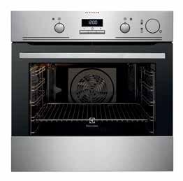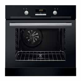 приготування їжі. Модель Electrolux EZB53410AK має широкий набір функцій і режимів, які значно спрощують запікання страв. Зекономити час на кухні дозволить також вентилятор гарячого повітря, яким обладнана шафа. Традиційний світлодіодний дисплей і функція таймера на панелі управління забезпечать просте використання пристрою. Керування температурою та режимами нагрівання здійснюється за допомогою кнопок та поворотних ручок. Для шанувальників хрусткої скоринки в духовій