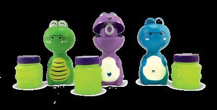 Об’єм розчину 59 мл. Для створення мильних бульбашок потрібно залити рідину в пащу іграшки, а потім натиснути на її гумове черевце. Поціновувачі динозаврів будуть у захваті від форми пляшечки. Коди товарів: GZ36571, GZ36572, GZ36573, GZ36574 Кольори рожевий, синій, зелений, помаранчевий