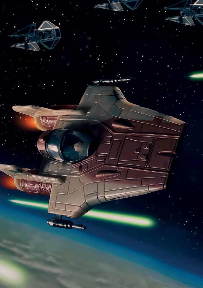X-Wing (Blue 1) – це винищувач ескадрильї, який оснащено крилами S-foils і висувними шасі. У комплекті є мініфігурки
