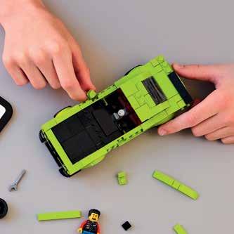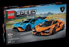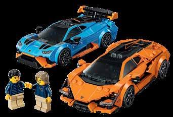 Подвійна доза швидкості в одному наборі: найпотужніший Revuelto з двигуном V12 і вулично-гоночний Huracán STO. Обидві моделі вирізняються впізнаваними елементами дизайну Lamborghini – повітрозабірниками, спойлерами та фірмовими Y-подібними фарами й задніми ліхтарями. Кількість деталей: 607 шт.