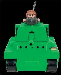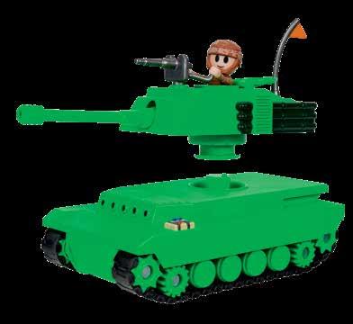У комплекті: функціональний танк (19 см) із рухомими гусеницями й баштовою гарматою, що обертається; також є фігурка солдата в камуфляжі (7 см), яку можна розмістити на башті для керування танком, а коли ситуація стане занадто «гарячою», башту можна відокремити від шасі. Тепер фігурки не лише досліджуватимуть світ, а й захищатимуть його!