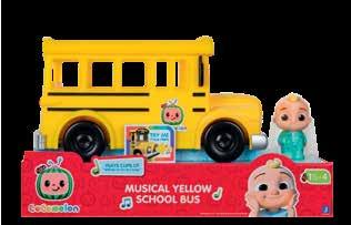Join JJ and his friends on an exciting journey around town with the bright yellow CoComelon school bus. Press the bus's grille to hear the cheerful song The Wheels on the Bus and other sound effects. The spacious bus interior can accommodate six of JJ’s friends. The soundtrack is in English.
