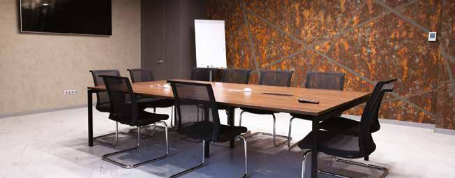 цим системам із функціями Touch & Mirror і Touch Control можна легко та швидко комутувати зображення на екран з одного із двох комп’ютерів у кімнаті. Також є фліпчарти та столи зі стільцями на 12 та 14 місць. Успіх перемовин не абияк залежить від їх організації, зокрема чіткої роботи допоміжного та сервісного персоналу, планування кавабрейків, обідів та іншого. Для комфортного функціонування переговорних кімнат передбачено кухонний бокс із необхідним устаткуванням.