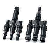 Два конекторирозгалужувачі на три лінії, які виготовлено з якісних матеріалів, призначено для паралельного або послідовнопаралельного з’єднання портативних сонячних або PVпанелей. Згодяться для підключення сонячних панелей (або ланцюжків сонячних масивів) з однаковою напругою. Дають змогу розширювати наявну або будувати нову сонячну систему як постійного монтажу, так і портативну (переносну). Допустиме використання за несприятливих умов довкілля.