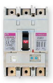 ТиповірозміриETIBREAK2S160&250 Номінальнийструм16-250A Кількістьполюсів1,3 ІмпульснанапругаізоляціїUimp8kV НомінальнанапругаізоляціїU690&800V ВимикальназдатністьIcu16,25,40kA ВідповідністьстандартамIEC60947-2,EN60947-2 Робочийдіапазонтемператур-10...50°С Вологістьмакс.85% Висота2000надрівнемморя
