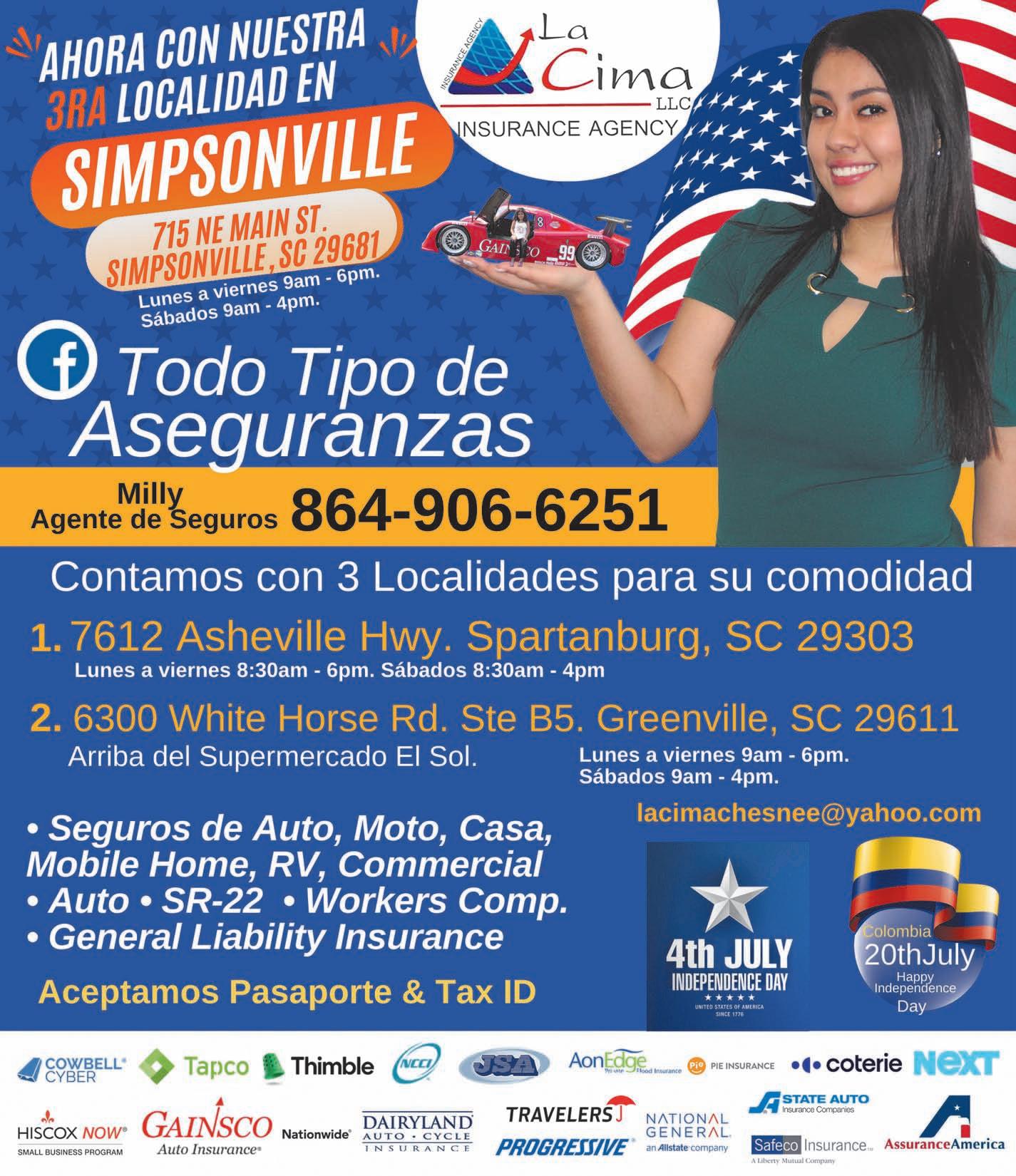 Dinamita, la publicación al servicio de la comunidad hispana en SC, sabe muy bien lo que te conviene, por eso te recomienda los servicios de esta agencia, que vela por ti, para evitar males mayores y que no tengas un susto cuando conduces.