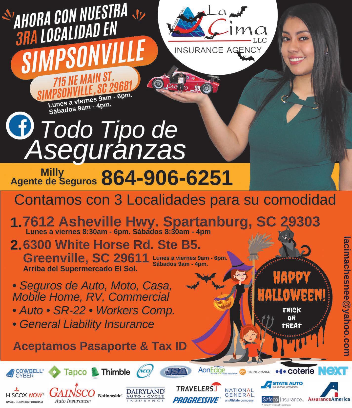 Visita las oficinas de América Latina Insurance Agency, en el 4 East Blue Ridge Dr, Greenville, SC 29609, llama al 864-546-8341 (con whatsap) o al 864-380-7764 (con whatsap) para que inicies tu gestión o aclares cualquier duda que tengas.