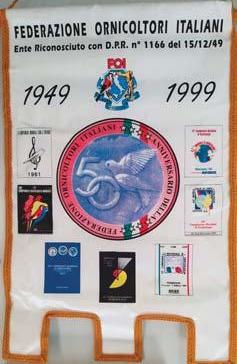 alle pareti delle rispettive sedi delle Associazioni o per abbellire stand espositivi/divulgativi. Vengono talvolta realizzati per celebrare ricorrenze significative (vedi ad esempio quello per il 50° Anniversario della Federazione Ornicoltori Italiani), oppure per fare onore a un particolare e vento o per solennizzare una esposizione ornitologica, un Campionato Italiano, una Mostra Internazionale C.O.M. Tra i gagliardetti presenti in questa rassegna fotografica e a corredo di questa breve nota, sono particolarmente legato a quello del 1991 che io stesso avevo fatto realizzare per consegnarlo a tutti gli espositori partecipanti al XXI Campionato Interregionale Calabro-Siculo a Palermo. Sono letteralmente “volati” trent’anni, e nel 1991 mi apprestavo ad iniziare una lunga collaborazione all’interno del Raggruppamento Calabro-Siculo (che mi avrebbe portato a ricoprire davvero tutte le cariche: dapprima segretario, per un breve periodo vicepresidente e per lungo tempo presidente, negli ultimi anni infine anche presidente della Commissione Contabile).
