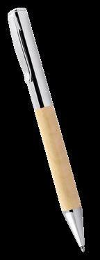 Penna a sfera e roller, fusto in legno e metallo lucido