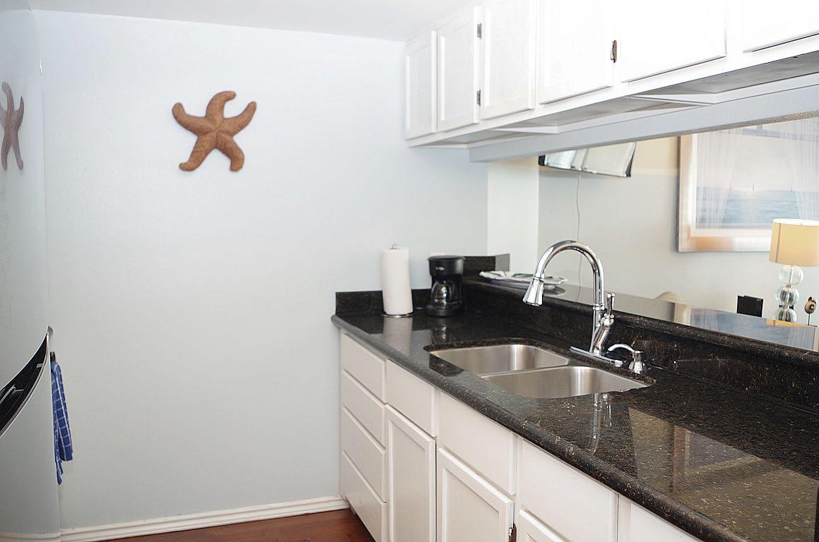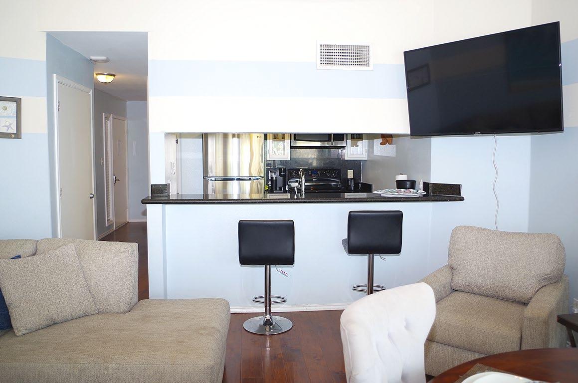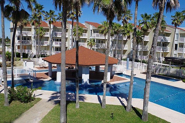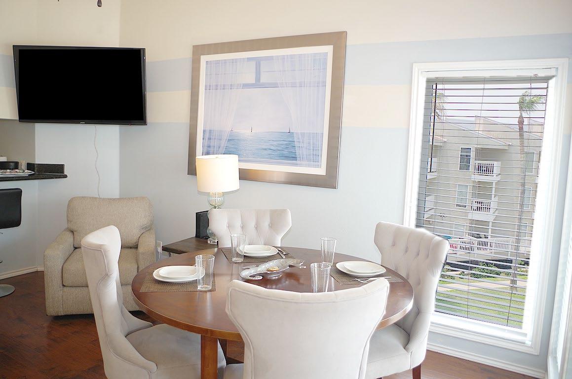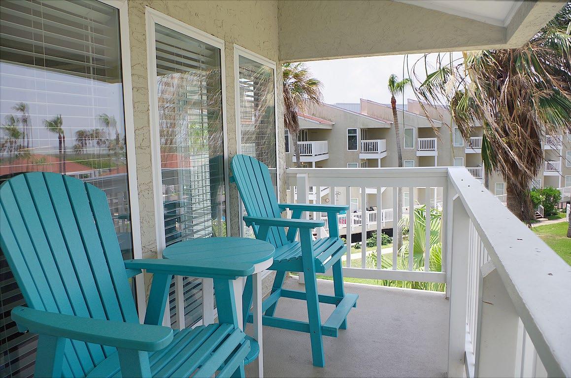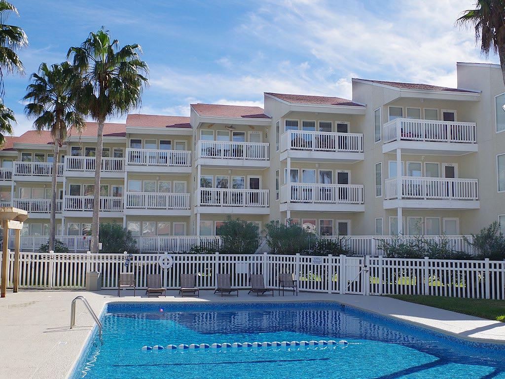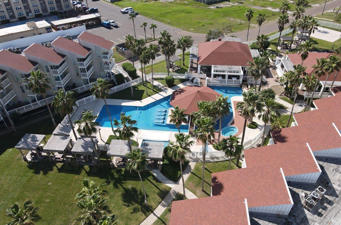 Welcome to your beachside retreat! This poolside top - floor gem is decorated in a coastal style, & is selling fully furnished. The open - concept layout, with high ceilings that add to the spacious feel. Enjoy partial views of the Laguna Madre Bay and the causeway from the living/dining area and balcony. The kitchen has granite countertops, ample cabinetry, and modern appliances. The main bedroom has an ensuite bath, and the guest bedroom is just across the hall from the 2nd bath. Both bedrooms feature a peek -a- boo ocean views. Both bathrooms are beautifully appointed with custom - tiled walk - in showers and granite counters. Lots of storage - spacious closets in both bedrooms, 2 hall closets, and a pantry. It's not easy to find another condo complex in this price range with the amenities that Gulfpoint has to offer - gated entry, covered parking, pool, hot tub, shaded kiddie pool, tennis courts, multiple BBQ areas, playground, gameroom, gym, & elevator.