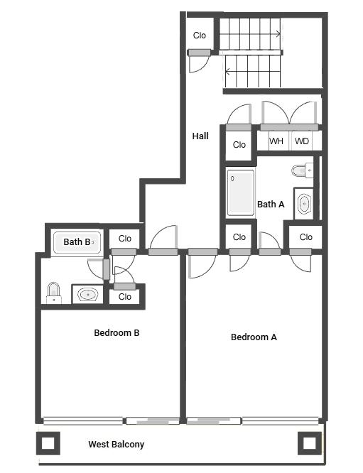 both have 2 closets and ensuite bath convenient half bath on lower level gated, unassigned 2 parking passes 2.5