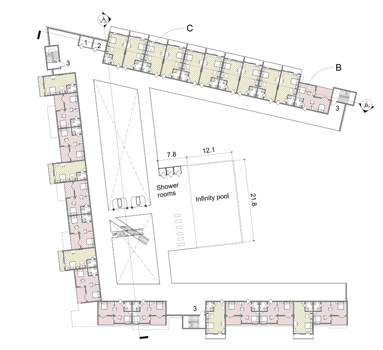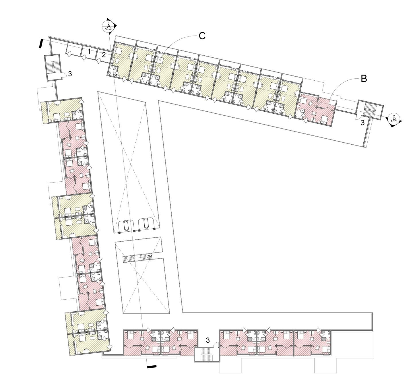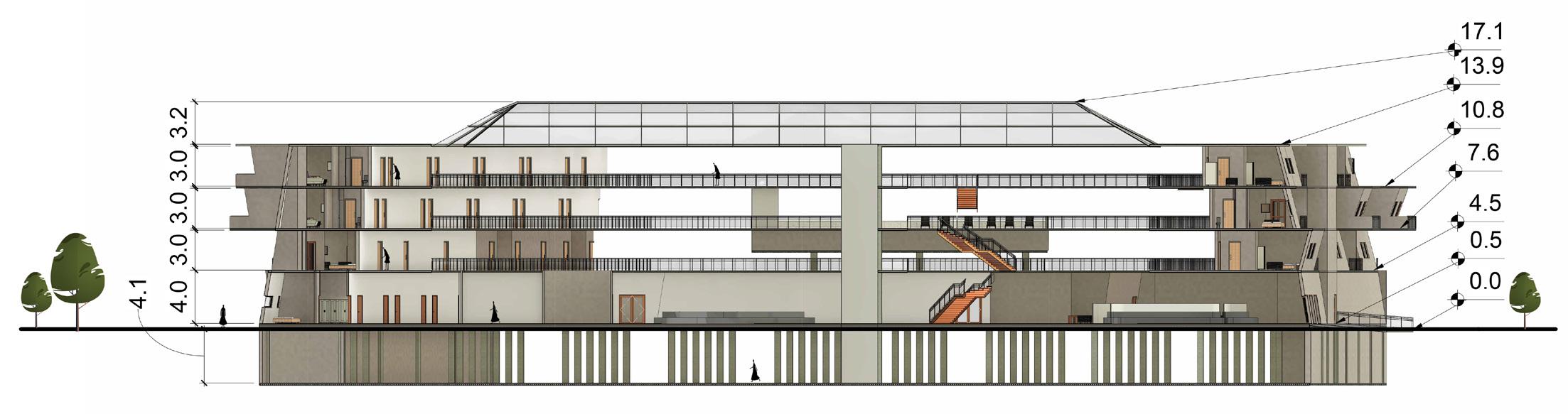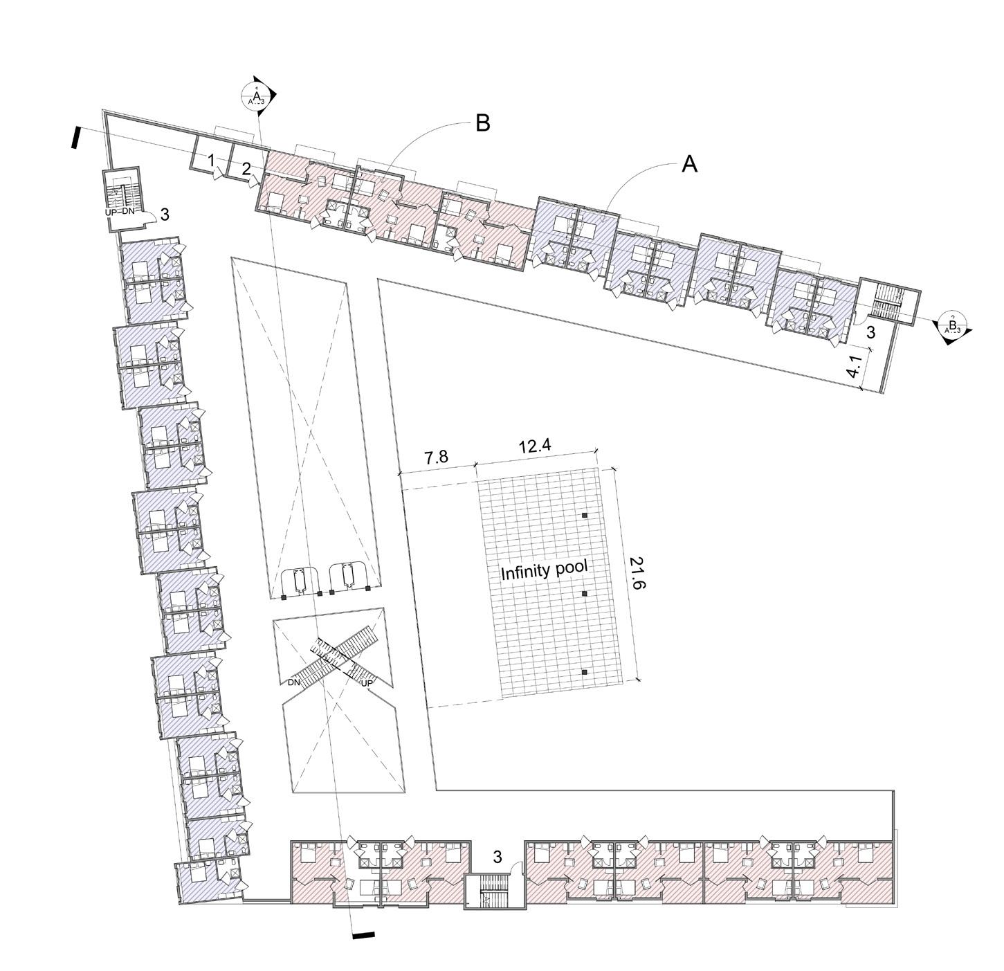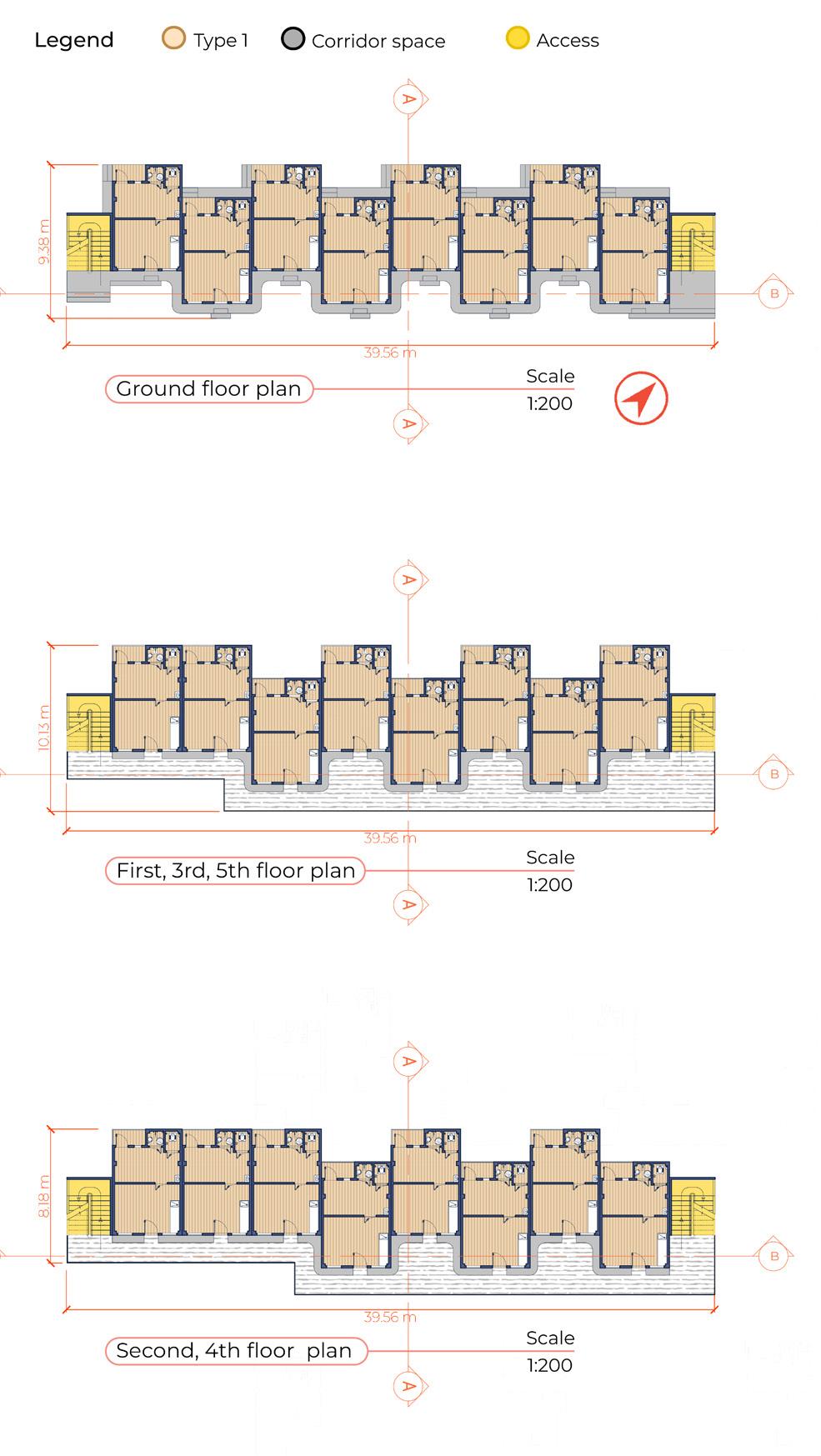 The design integrates modular precast units for efficient and rapid construction. Given the limited site area, the focus is on creating community gathering spaces on each level of the structure, rather than just at ground level. The staggered arrangement of the units generates small communal areas on each floor, allowing residents to engage with their neighbors, mirroring the closeknit social life of slum communities
