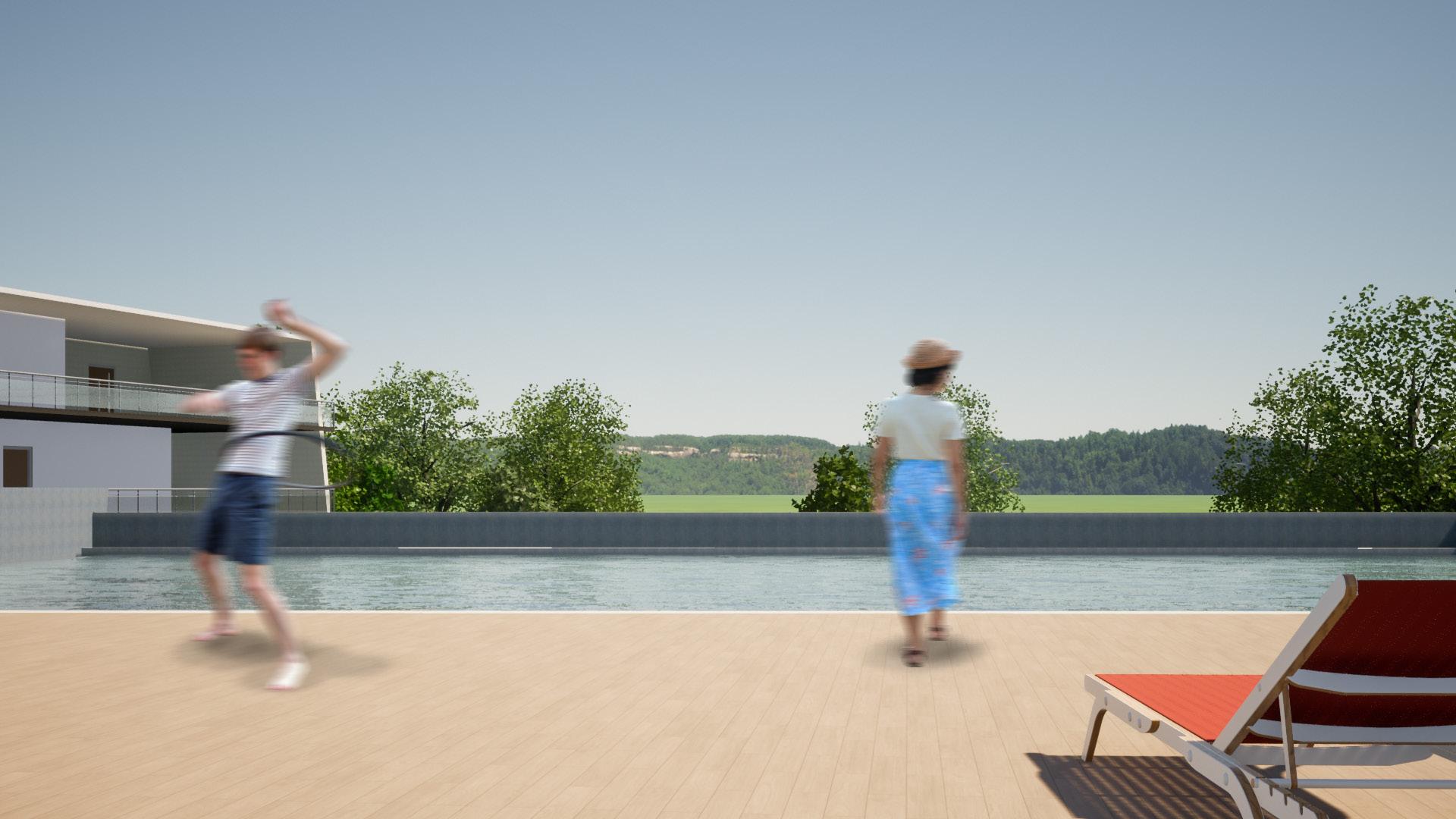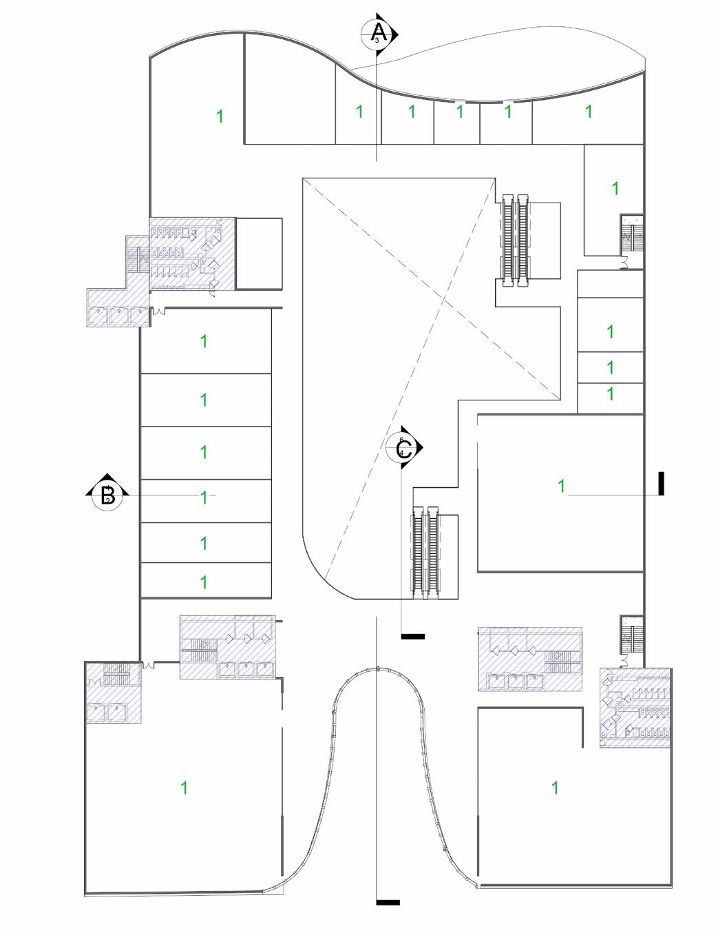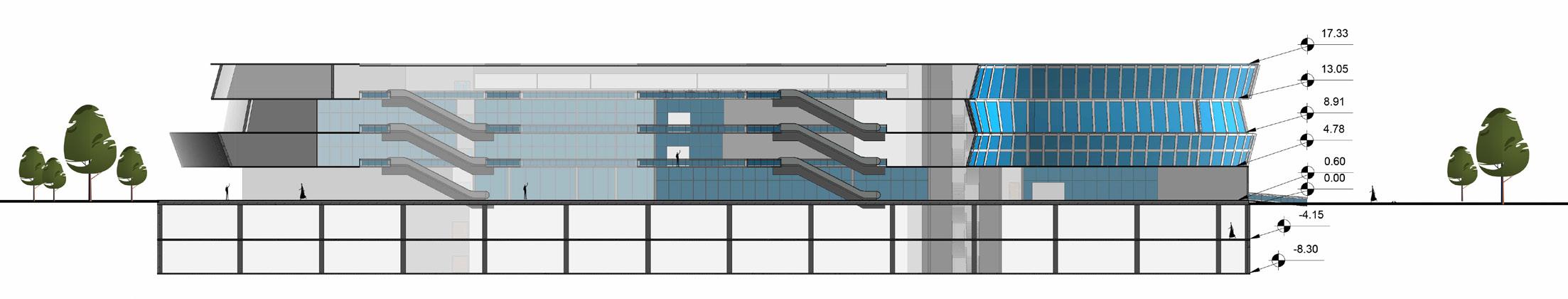 This development features a hotel, a mall, apartments, and office spaces, with a focus on playfulness achieved through a deconstructivist architectural style. The design includes parks, jogging tracks, and a pond, with the pathways laid out in a non-linear, dynamic manner to create a more organic feel. Trees are strategically placed, using different species to achieve varied effects