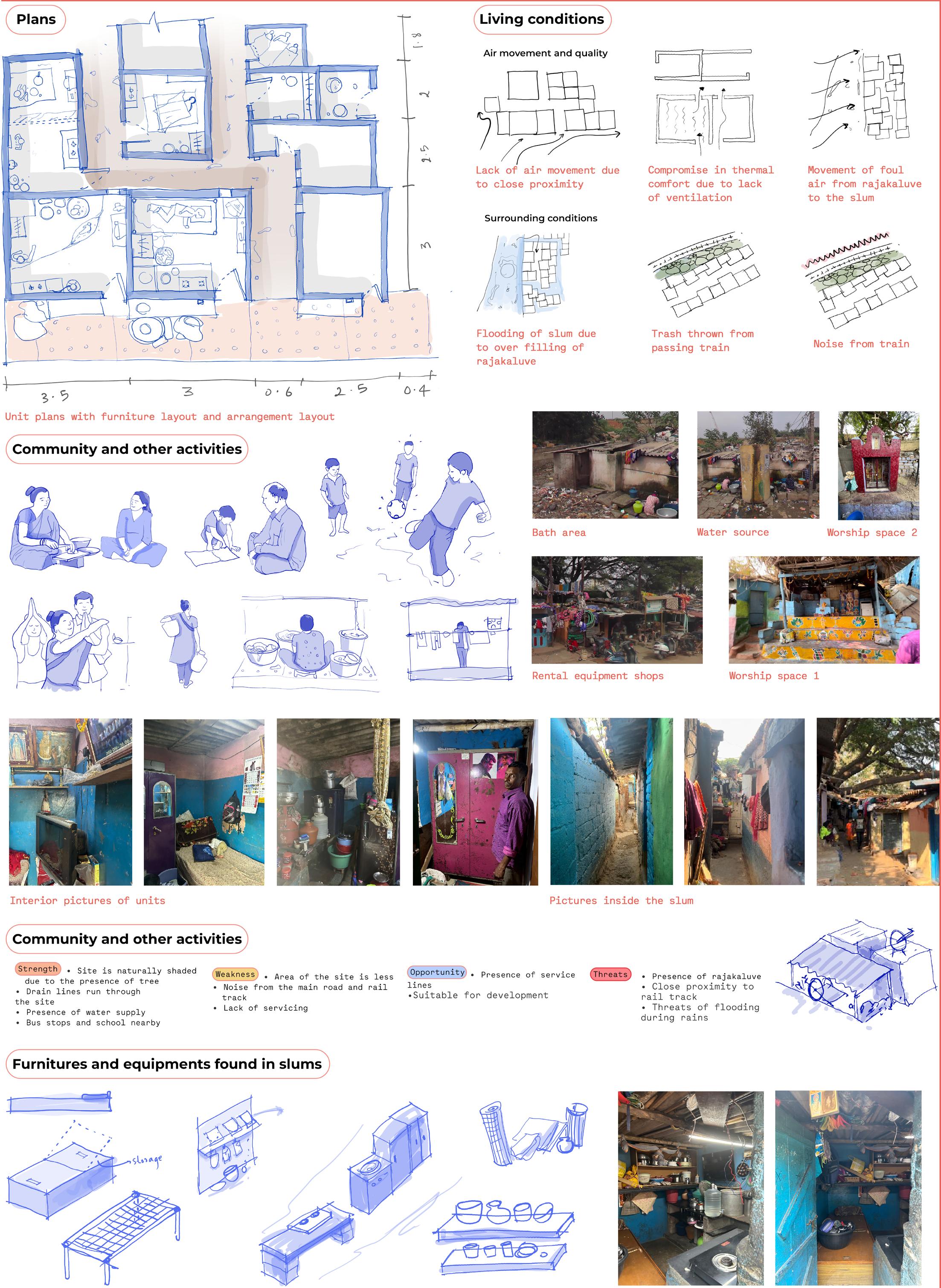 This project explores the living conditions in urban slums, examining various slum types and techniques for their improvement. It highlights the significance of human interaction in housing projects and its role in enhancing the well-being and happiness of residents.