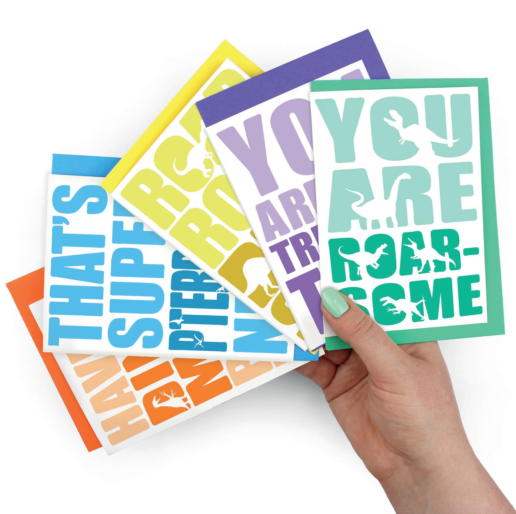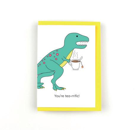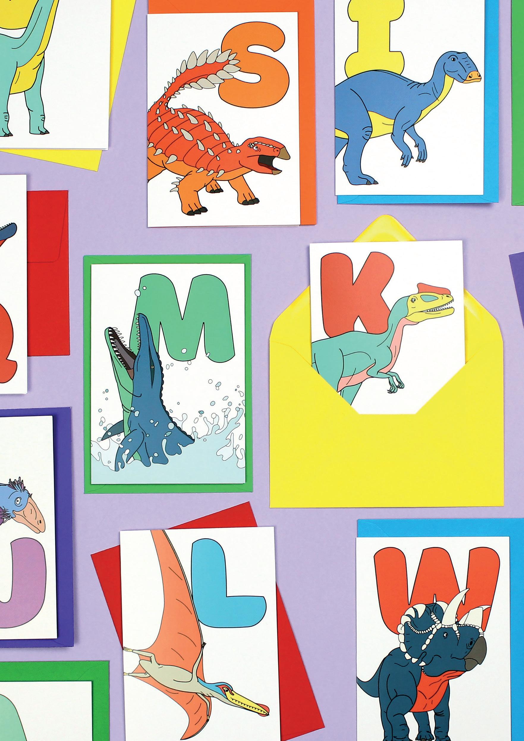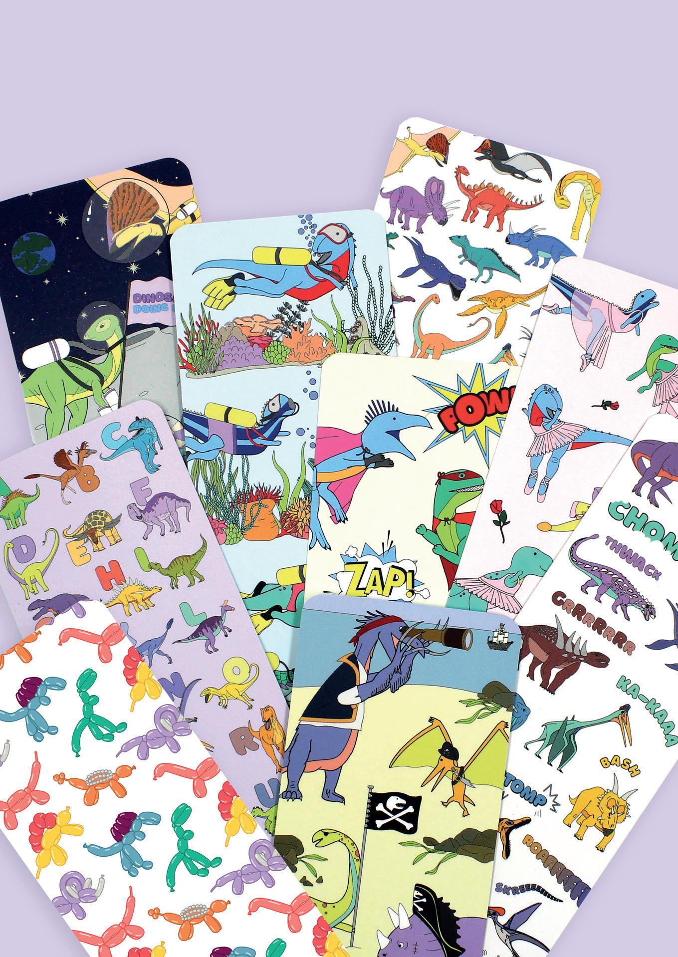 The result? Mini books with dinosaur histories and funny primitive illustrations which morphed into postcards, gift tags, and alphabet posters. I adore blending dinosaurs doing everyday stuff with pun-tastic humour.