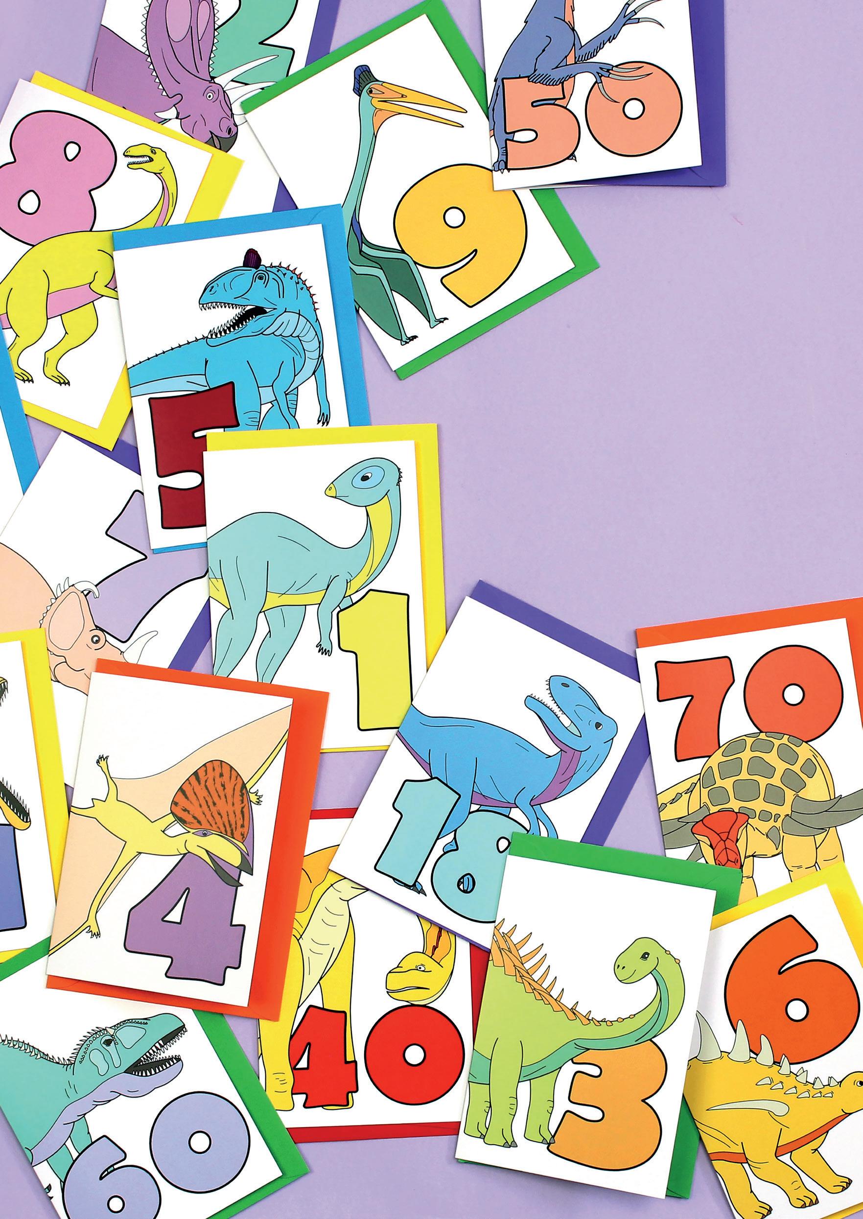 Each card tells you which dinosaur, flying reptile or swimming reptile is featured