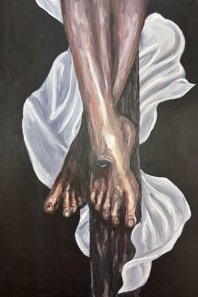 My artwork, titled “First witness of the light” is influenced by the scripture found in John 20:1-10. The opening words in the passage “Mary Magdalene came to the tomb and saw that the stone had been removed from the tomb” recounts the early morning when Mary Magdalene visits Jesus’ tomb only to discover that the stone has been rolled away. Mary is the first witness to discover this, marking an important event of Jesus’ resurrection.