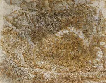 Le début de la parabole de Matthieu évoque le déluge, notamment son surgissement soudain. Ce dessin à la plume de Léonard de Vinci évoque beaucoup