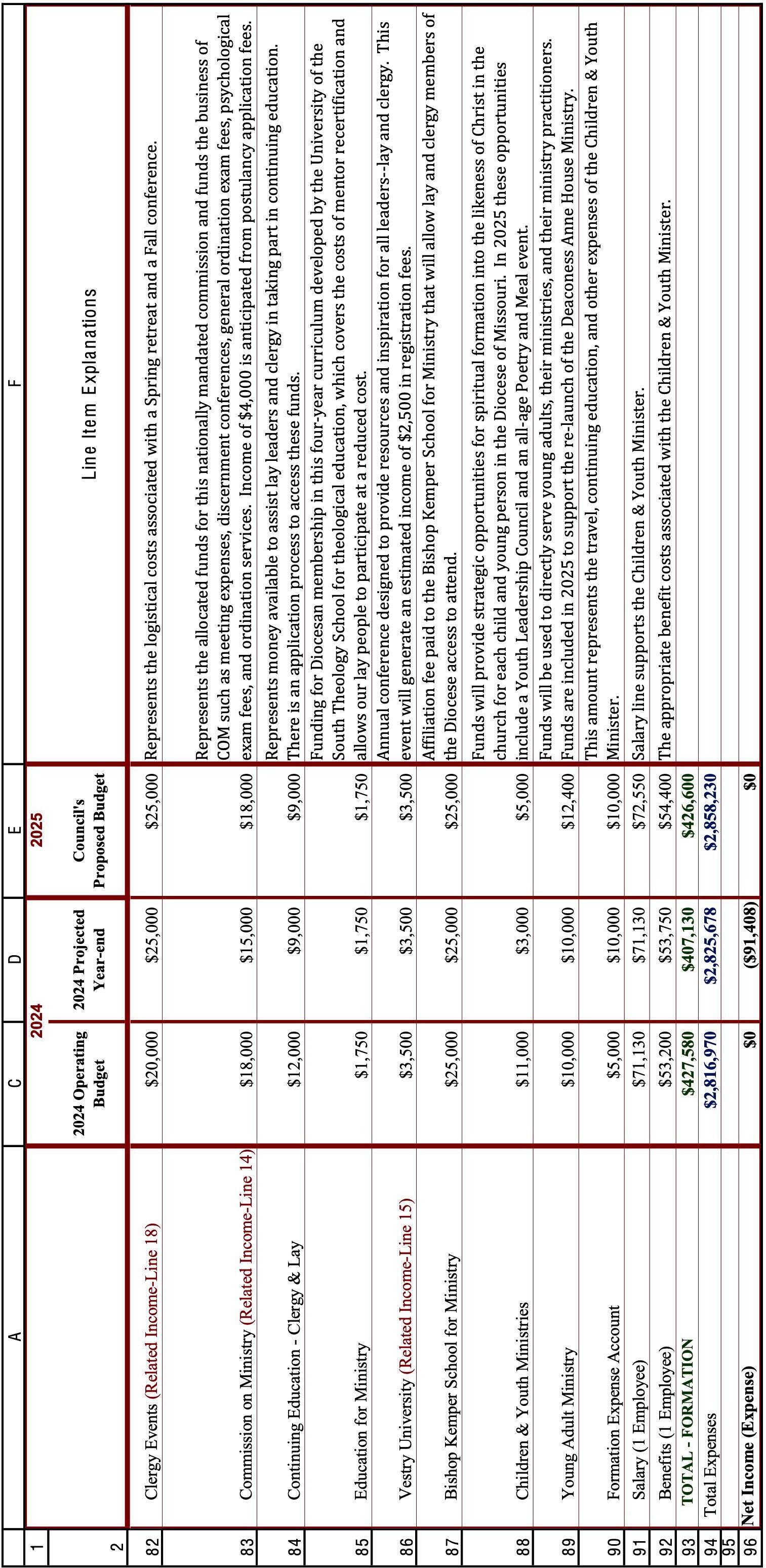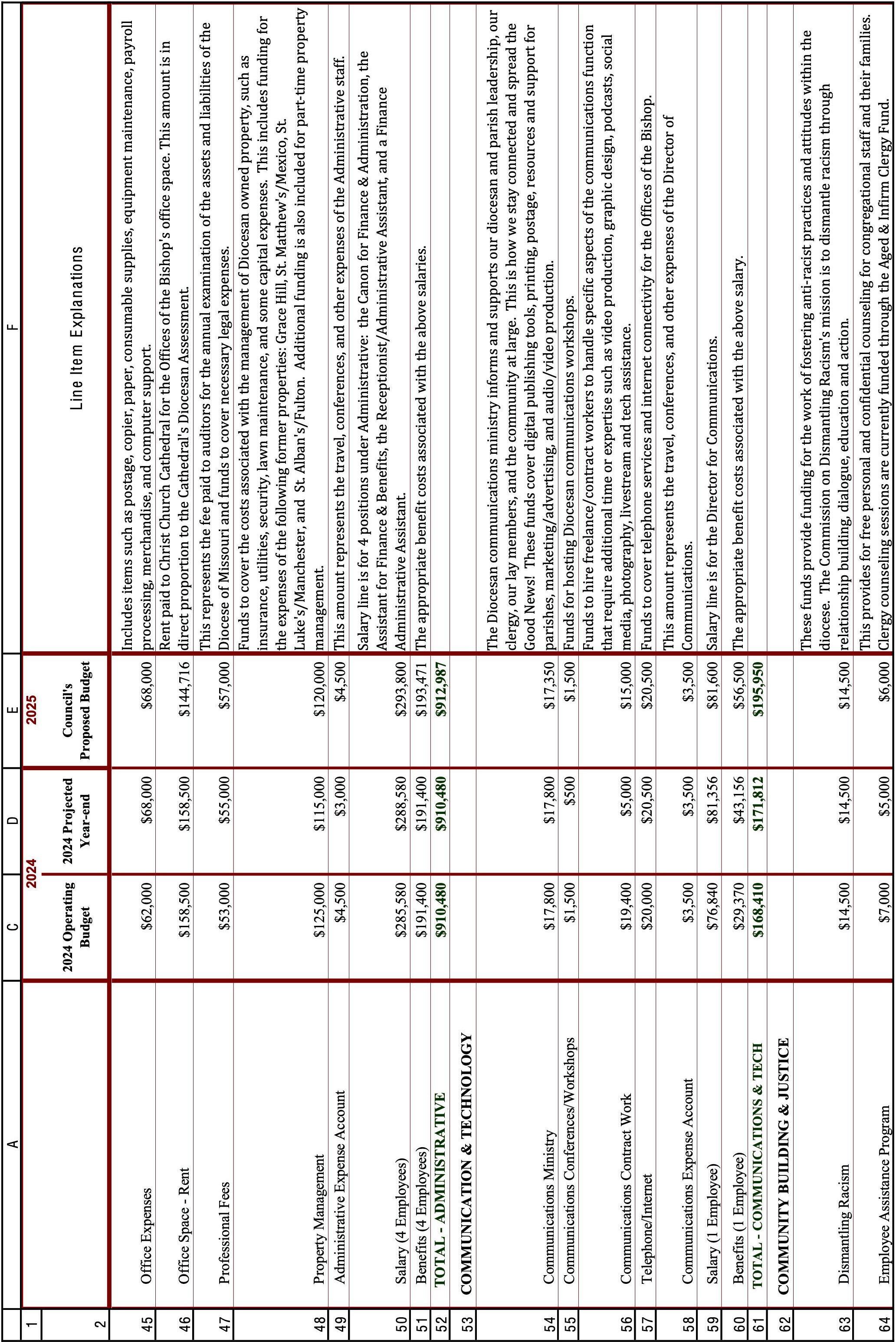 Line 11 – Property Income - This includes rental income from the former St. Matthew’s Church/Mexico property ($10,000) and the Grace Hill Property ($33,000), in addition to a distribution of $16,000 from the Future Mission/Property Fund.