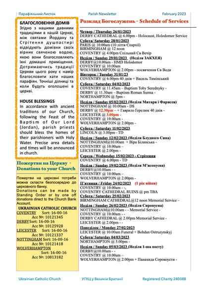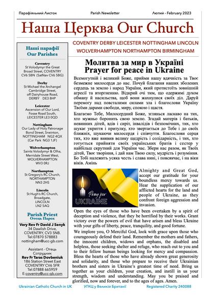 ASFEATURED NTHEFEBRUARYUKRAINANCATHOLICCHURCHPARISHNEWSLETTERFOR COVENTRY,DERBY LEICESTER,NOTTINGHAM LINCOLN WOLVERHAMPTON,NORTHAMPTON,BRMINGHAM(asseenbeow)