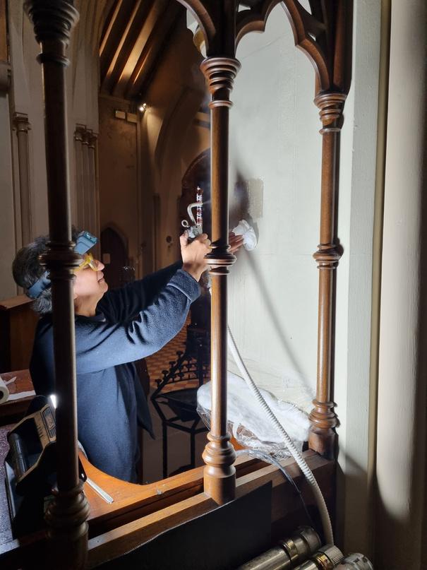 An innovative environmental project also forms a key aspect of the Restoring Pugin Project. Parishioners and visitors will have noticed there is damp rising on the column bases in the nave and there is occasionally condensation in the Cathedral It is important to find a solution to this problem at the development stage of the project, in order to ensure that the restored paint schemes are not at risk of damage A specialist engineering consultant is undertaking an environmental survey to consider this. Nottingham Trent University, one of the partners in this project, are placing twelve sensors around the Cathedral to monitor humidity and temperatures throughout the next year. This data is then fed back to a Digital Twin of the Cathedral Thanks to Heritage Fund support, Nottingham Trent University will be appointing two Research Fellows to develop this Digital Twin model This should not only contribute to finding a solution to deal with the damp, but the data will be used to create an innovative video game Players of the game will be able to manipulate temperature and humidity to test the different outcomes on the building fabric The hope is that this game can become a tool to help young people understand how climate change can affect built heritage, as well as helping them consider careers in the heritage sector