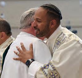 Newly ordained Deacon Ellis embraces a brother deacon during the Sign of Peace. Mike Ehrmann photo