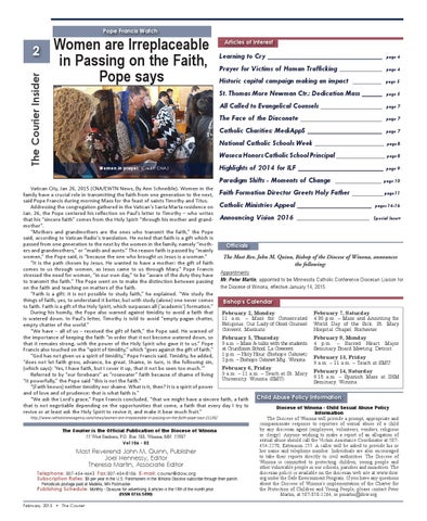 The Courier is the Official Publication of the Diocese of Winona 55 West Sanborn, P.O. Box 588, Winona, MN 55987 Vol 106 - 02
