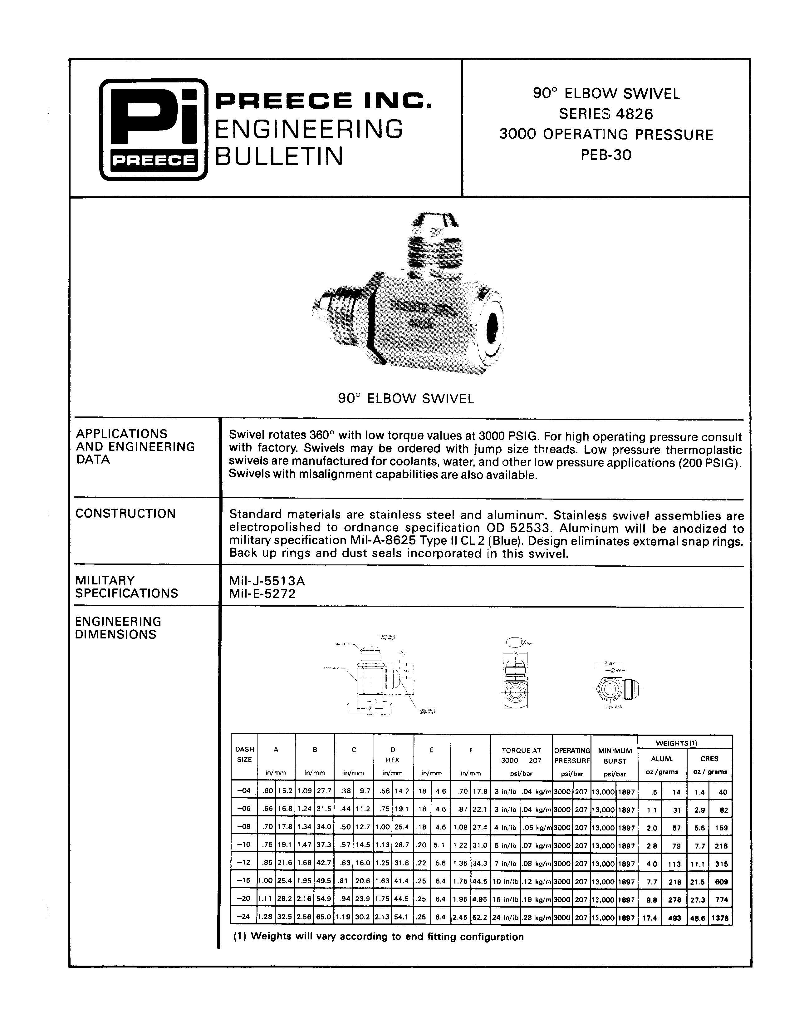 PREECE INC. ENGINEERING BULLETIN 3000 OPERATING PRESSURE