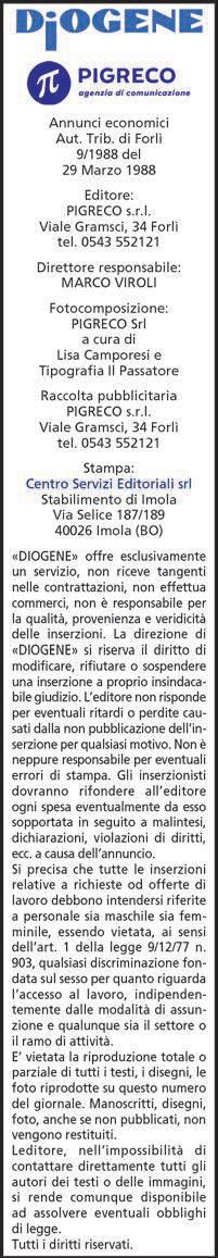 A CURA DI ROBERTA BRUNAZZI IN COLLABORAZIONE CON GABRIELE ZELLI redazione@diogeneannunci.it