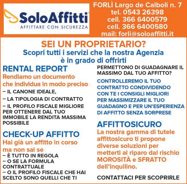 DI INCONTRI presentandosi direttamente c/o i nostri u ci in via Gramsci 34A Forlì, muniti di documento d’identità. Il costo è 40 euro per la pubblicazione settimanale. PROMOZIONI PER PACCHETTI MENSILI Per ulteriori informazioni contattaci allo 0543 553131