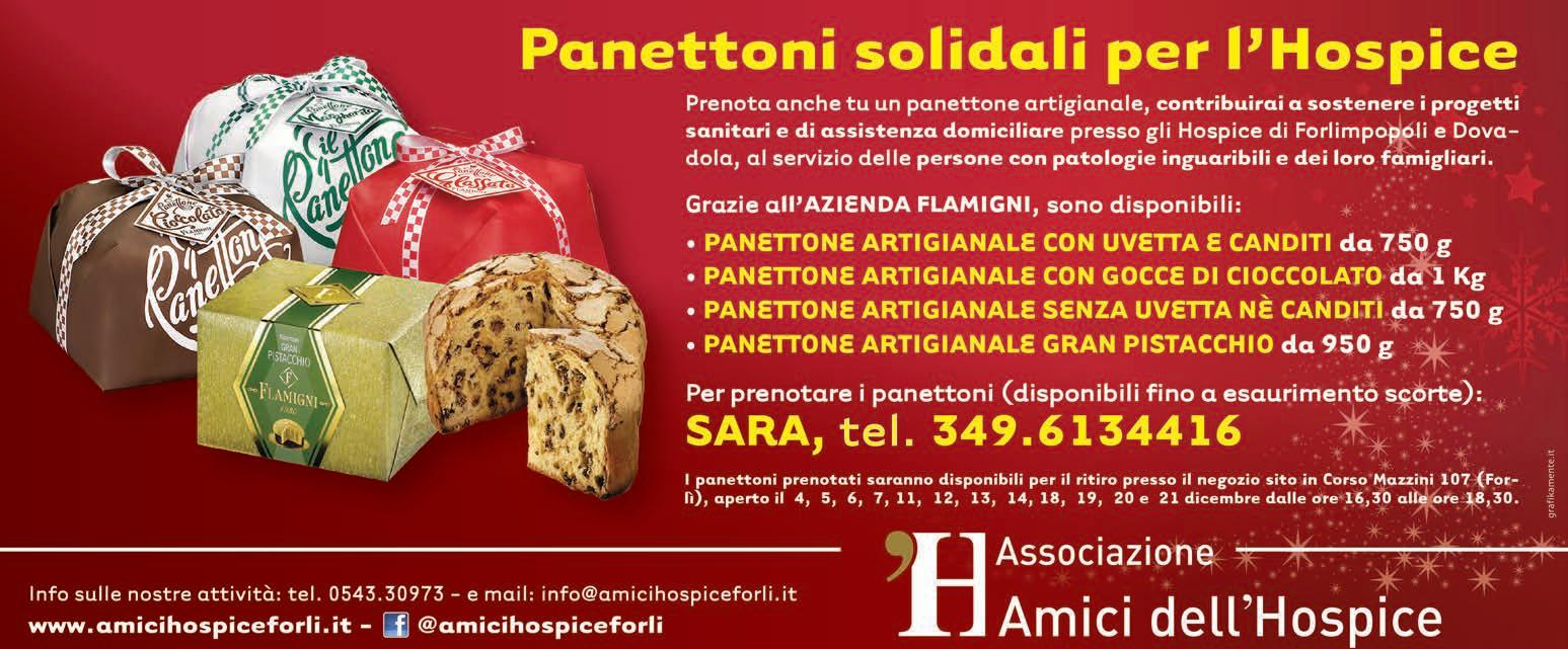 Cure palliative nel comprensorio forlivese. Grazie alla collaborazione con l’azienda dolciaria Flamigni di Forlì, l’associazione ha a disposizione quattro tipi di panettoni prodotti con metodo artigianale: prenotandoli, si contribuisce al sostegno di progetti sanitari e di assistenza. I panettoni prenotati saranno disponibili fino al 21 dicembre al punto di ritiro dell’associazione, a Forlì in corso Mazzini 107, ogni giovedì, venerdì, sabato e domenica dalle 16,30 alle 18,30. Info. e prenotazioni: 349 6134416 (Sara).
