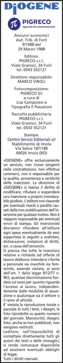A CURA DI ROBERTA BRUNAZZI IN COLLABORAZIONE CON GABRIELE ZELLI redazione@diogeneannunci.it