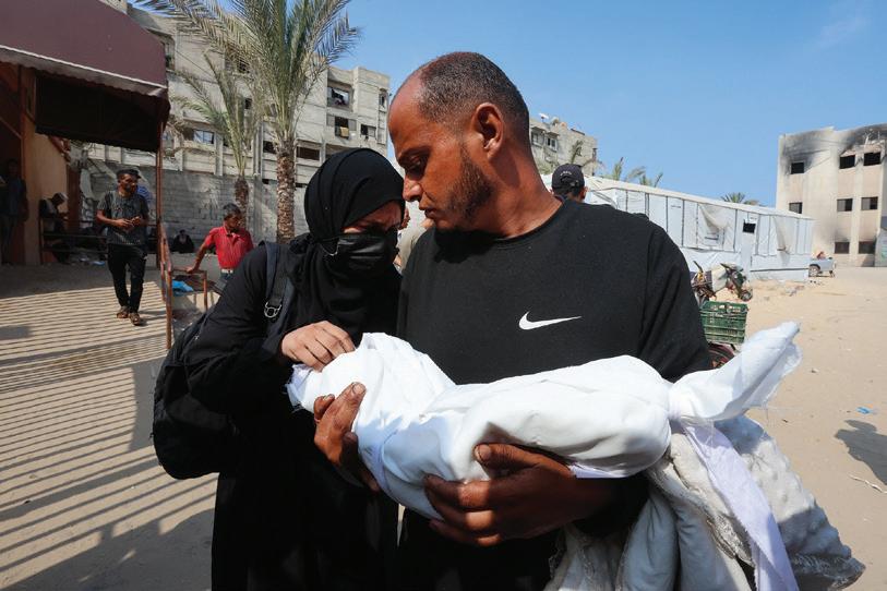 2, 3. Daniel’s mother, Judge Esther Salas, speaks words of faith, love, peace and forgiveness to those present, and prays together with her husband, Mark Anderl, during Mass.